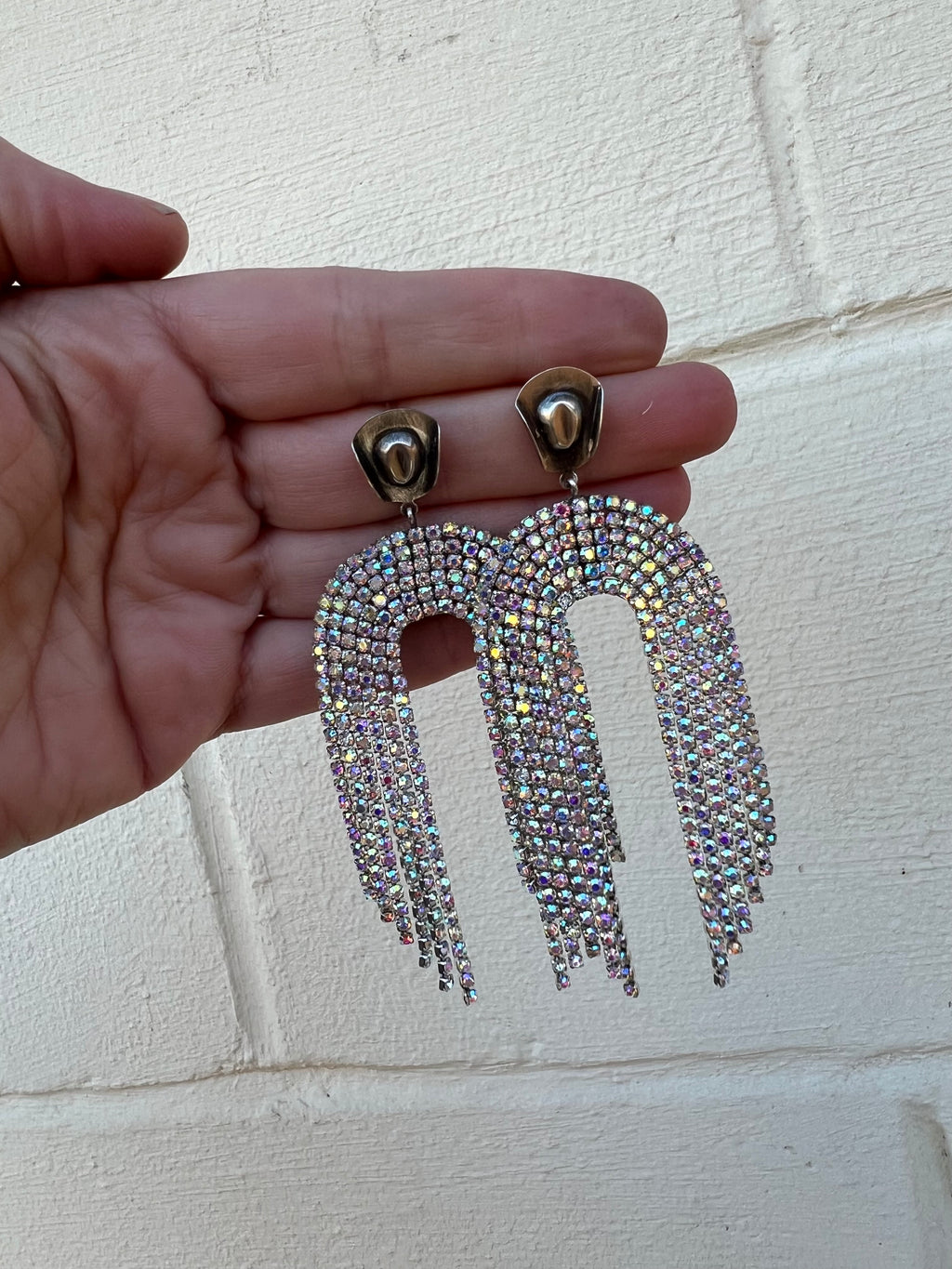 Giddy Up Sparkle Stud Earrings - Silver Hat